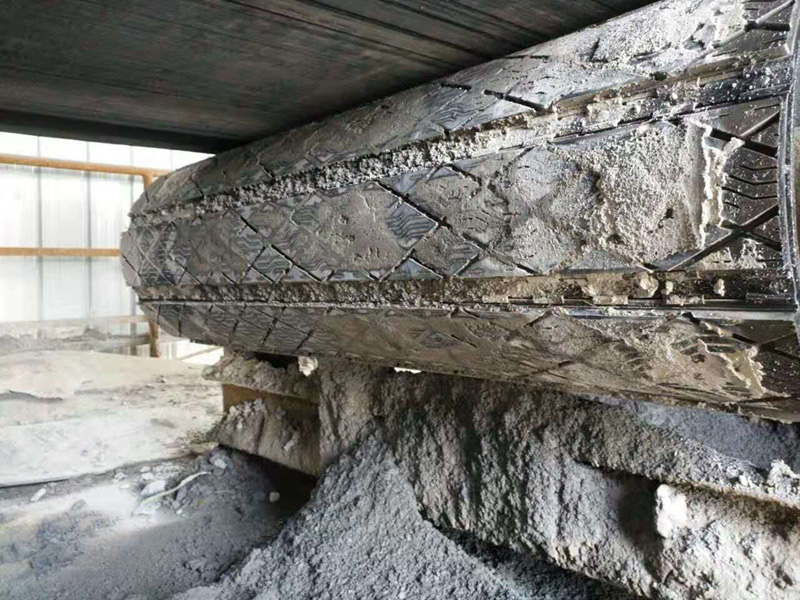4. 金屬擋條焊接于滾筒表面,確保包膠插片固定在滾筒表面。